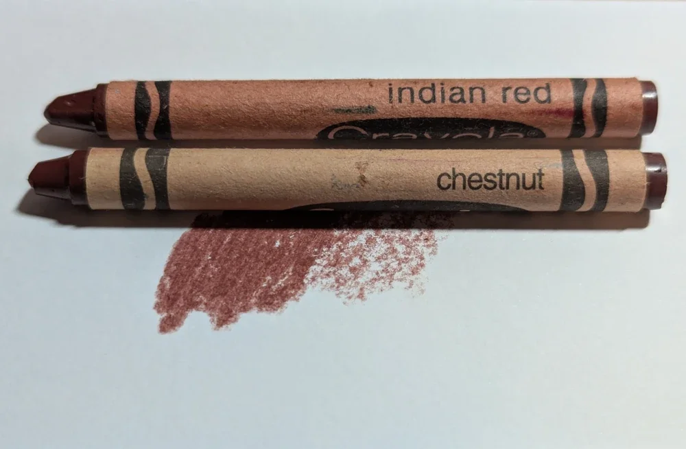 For many years until 1999, Crayola, the Crayon manufacturer actually had a racist inspired Crayon called “Indian Red”. After much protest they renamed it “Chestnut”. Read the AP & Chicago Tribune story and more here and here and here.